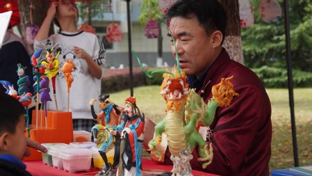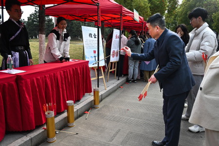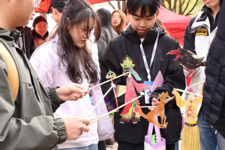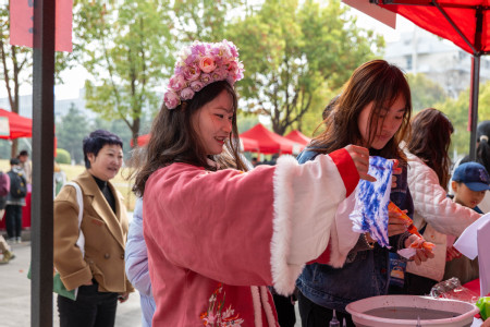本届游园会以“拾遗记趣,乐享非遗”为主题,精心打造了面塑、糖画、漆扇、扎染、皮影戏、滚铁环、蹴鞠、抖空竹等20余个特色非遗体验区。千余名学子穿梭其间:或执笔描摹丹青意趣,或巧手编织锦绣纹样;泼墨挥毫者尽显少年意气,品茗论道者传承千年茶韵。蹴鞠场上喝彩连连,矫健身姿重现古风;灯谜区中沉思阵阵,师生共解文字玄机。尤为引人驻足的是漆扇、糖画、面塑等特色展位,同学们纷纷亲手体验,在传统技艺的制作过程中感悟匠心传承。