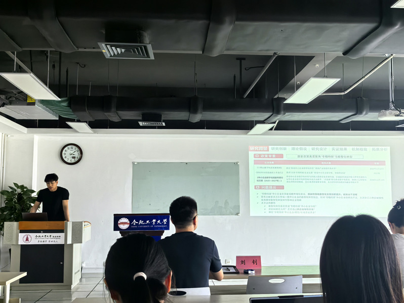 活动中,四位研二员工率先展示研究进展与论文框架。随后,两位老师结合学术前沿与指导经验,从论文结构、选题价值、创新性等方面展开专业点评。刘钊着重指出,论文题目与内容需紧密呼应,研究内容应紧扣题目逻辑。郭冉冉则聚焦实证研究,强调变量测度科学性是关键,要重视解决测度中内生性问题。