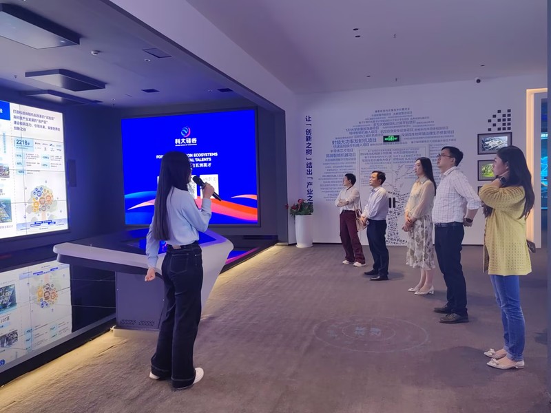 孙林副经理重点介绍了浙工大公司在专业培养方案改革和就业育人体系建设的创新实践,提出希望在课程开发、团队共享、联合培养等方面深化合作。双方围绕合作办学、国际化接轨等议题展开深入交流,初步达成合作共识。会后,双方一同前往科大硅谷参观,就科技成果转化应用、高层次人才引进等问题展开实地考察交流。