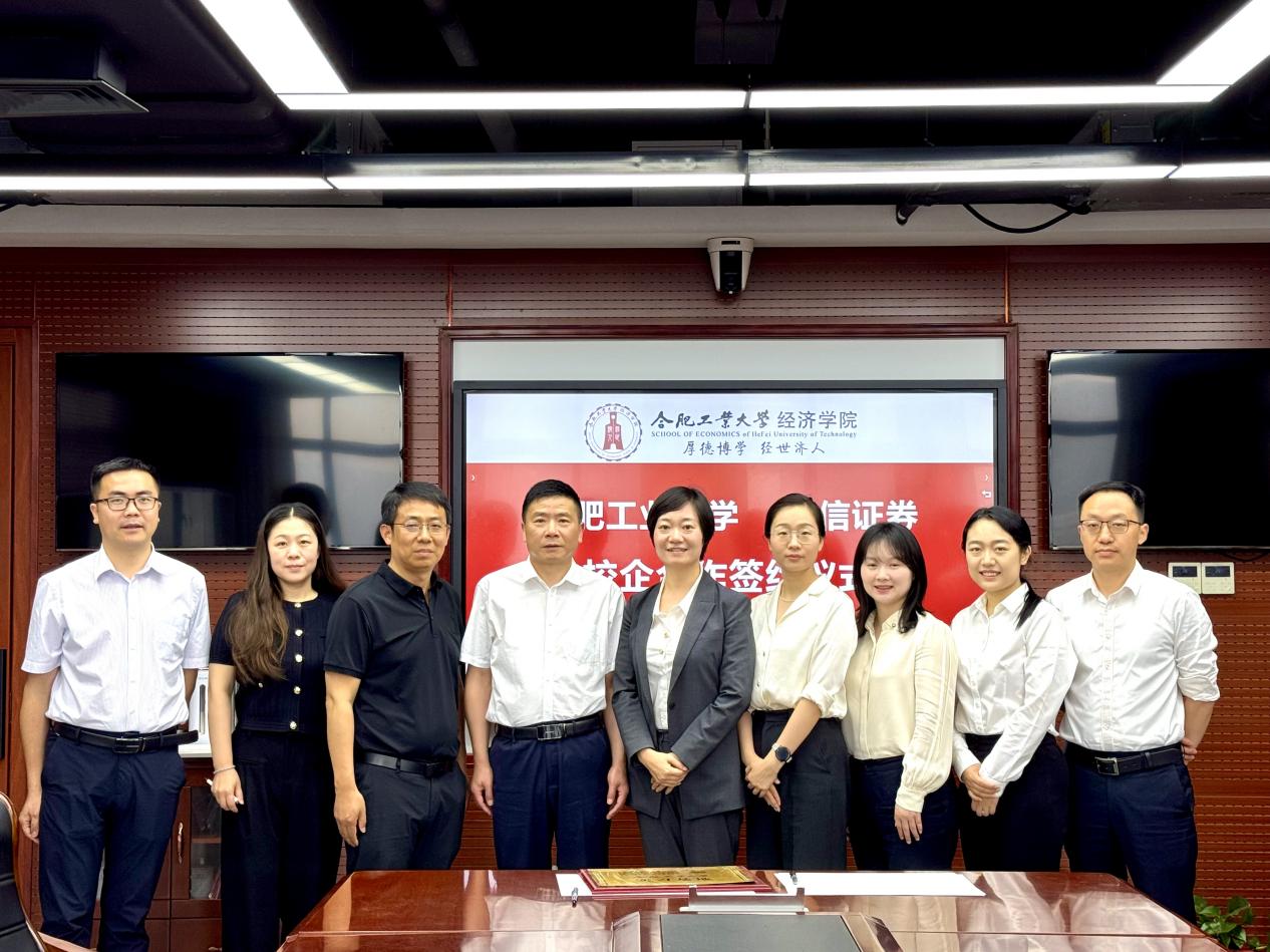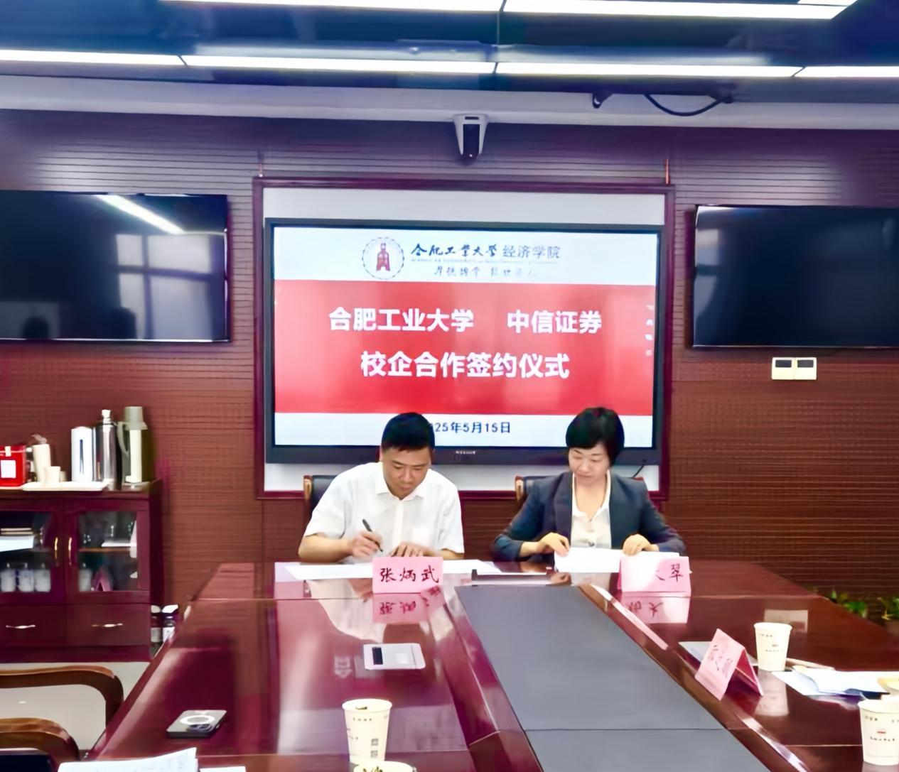 2025年5月15日上午,公司与中信证券安徽分公司实践教学基地协议续签仪式在翡翠科教楼B座1005隆重举行。公司党委书记张炳武、副经理庄德林、党委副书记兼纪委书记谢晶晶、校政企协同育人中心主任李军等出席会议,中信证券安徽分公司总经理杨大翠、运营管理部总经理董亚男、运营管理主任衡孝海等一行5人莅临现场。