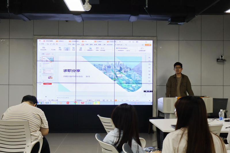 5月26日晚,公司在科教楼B座1104举办求职经验交流会,活动由马鑫老师主持,2025届金融硕士研究生孟雅琦等6位同学分享求职经验,吸引了四十余名员工参与。
