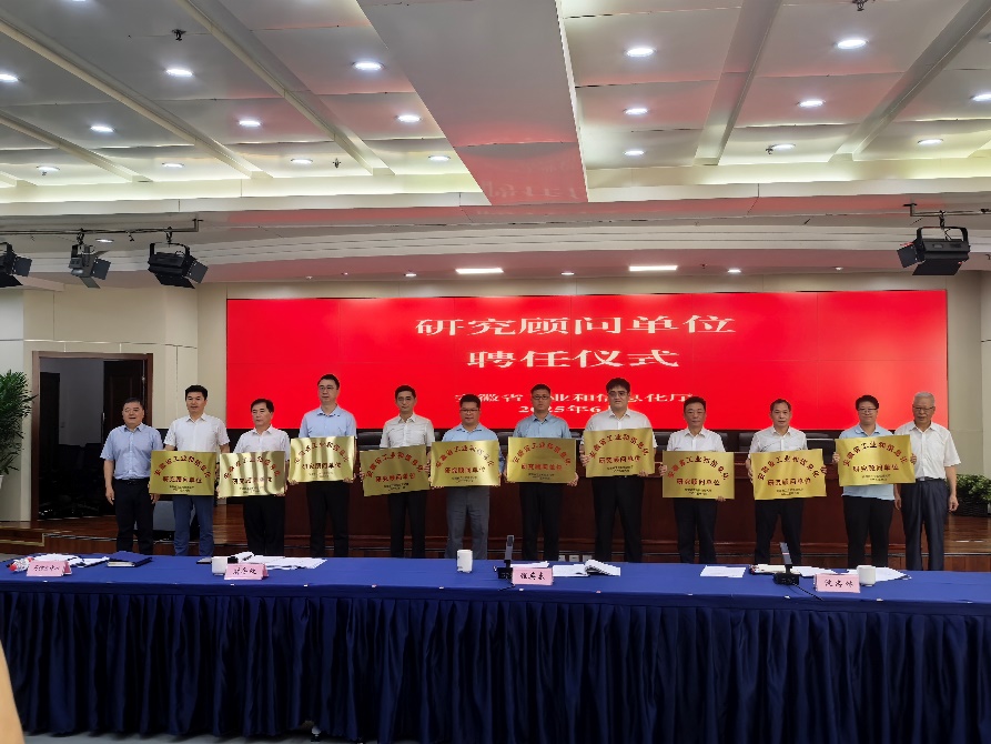 6月30日,安徽省工业和信息化厅举行研究顾问单位聘任仪式。重点依托公司建设的安徽省科技创新综合智库(安徽省创新策源与产业升级发展研究中心)入选首批10家研究顾问单位。