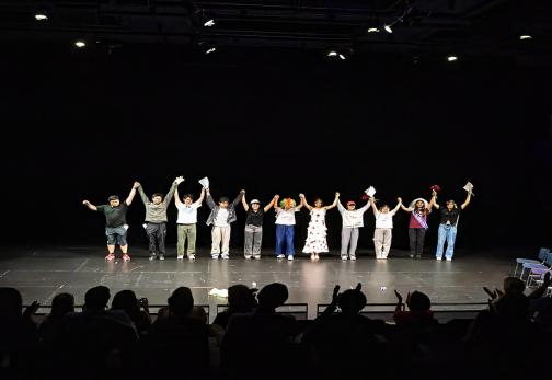 在接下来的课程中,Prof. D-O 带领我们逐步解析剧情与人物关系,练习不同角色的台词,讲解莎士比亚作品中特有的英语表达,一起动手制作道具与服装,反复进行彩排……我们一步步朝着最终的舞台呈现迈进。最终,我们站在了真正的舞台上,在几十位观众面前完成了这场演出,并赢得了他们热烈的掌声。