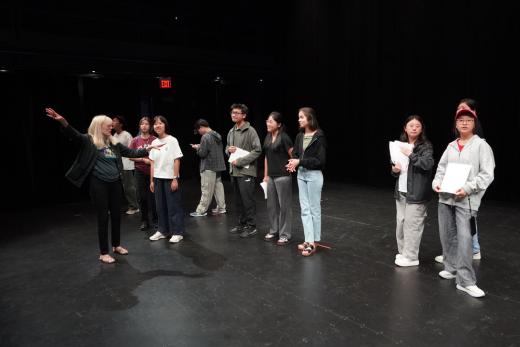 在Prof. D-O 的引导下,经过全班同学一个月的共同努力,我们不仅成功挑战了自我,也对英语语言有了更深入的理解。这门课不仅聚焦于戏剧排练,还融入了丰富的语言与文化内容:有时是介绍美国历史文化的小知识,有时是通过她精心设计的小游戏学习英语,Prof. D-O 还鼓励我们积极表达,每节课都会提出不同的生活小问题,或邀请大家分享在美国的独特经历。这一切都让课程更加生动而充实。