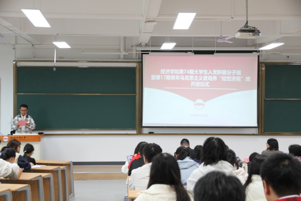 仪式在庄严的国歌声中拉开序幕。公司2024级本科生张伊冉作为学员代表发言,表达了全体学员追求进步、锤炼本领、担当使命的坚定决心。凡菊老师介绍了“经世济民”班的培养目标与主要内容,曹力文老师明确了入党积极分子班的学习安排与实践要求。张炳武书记强调了培训纪律,要求学员们端正态度,严守规定,确保学习成效。